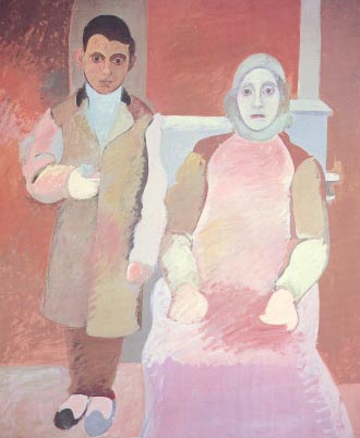 His self portrait with his mother was painted from a photograph he discovered in 1926. He recreated different versions of the picture; each version told a different story and evokes different emotions in very subtle ways.