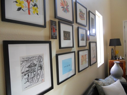 I curated a wall in my home with some 20×200 artists including Jessica Snow, Craig Damrauerm, Gary Petersen (I hope he excuses me for re-orienting his work on my wall) and Amy Jean Porter. I sprinkled in some of our own travel photography, two small paintings by artist/video game Art Director Ken Feldman and some Chinese watercolors that I dug up at HD Buttercup, and voila! My walls are bare no more!
