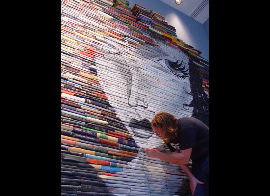 I love the latest mural at the Standard DTLA by artist Mike Stilkey. This mural left me wanting to learn more. I particularly like what he has done with his book sculptures which attempt to breathe new life into old books by telling a new, visual story through their assemblage.