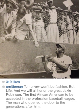 I honestly ignore 99% of hashtags (while totally being guilty of overusing them myself), but couldn’t with this one. As I perused the amazing pics of stylishly dressed black men at the Umit Benan show, I learned that he dedicated his Paris Men’s Fashion Week show to Jackie Robinson. According to the New York Times, at the beginning of the show he played Martin Luther King Jr’s “I Have a Dream Speech”, while models were standing obscured in shadows and a chain link fence (the set was designed as a long forgotten baseball field). In dramatic convention that is de rigueur in Paris Fashion Week shows, the long intro ends with the catwalk being flooded in light paving the way for the models to walk the runway.