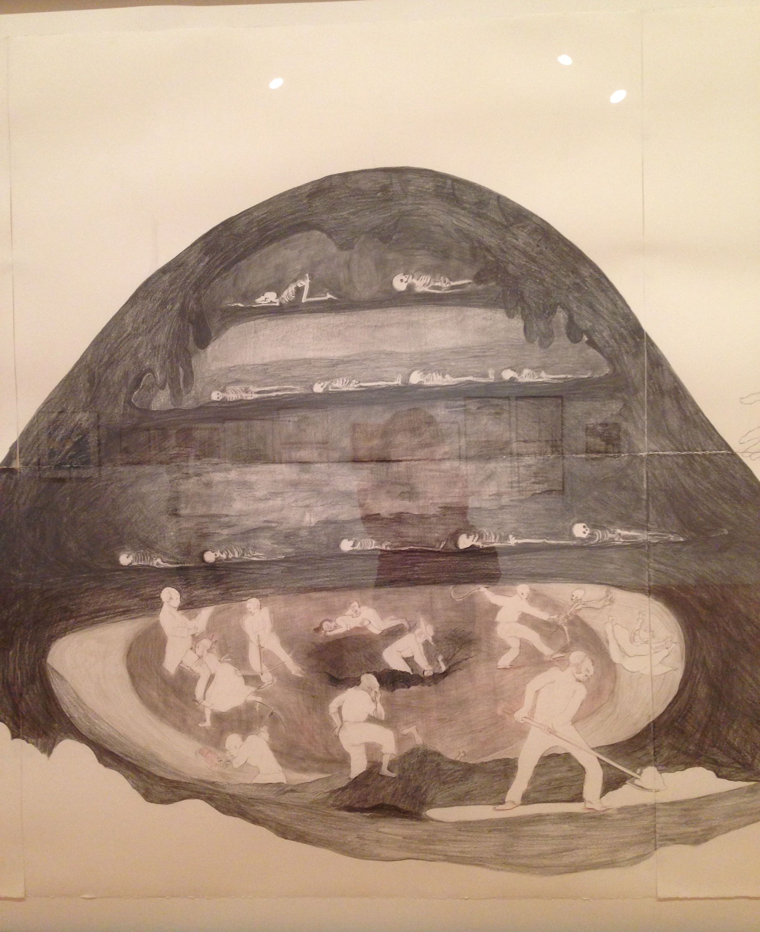 With every turn of the page the themes grew more disturbing transporting me to a dark place in our history that we don’t like to visit. On numerous occasions during visits to MOCA L.A. I’ve been drawn to the above sketch by the artist and each time I view it I see something new. The title in itself is fascinating.